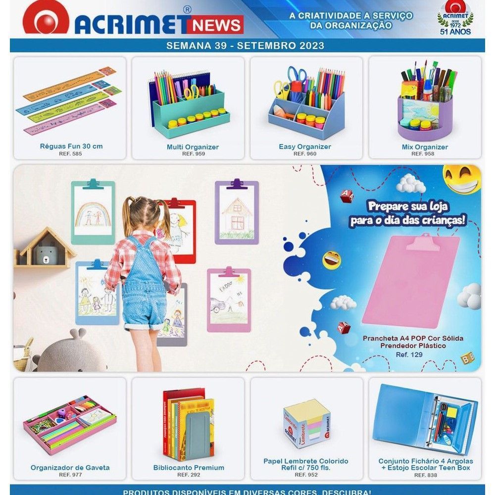 Fundada em 1972, a Acrimet é uma empresa com o foco principal na criação, desenvolvimento, fabricação e distribuição de produtos para organização de escritório, para o lar e artigos escolares.
